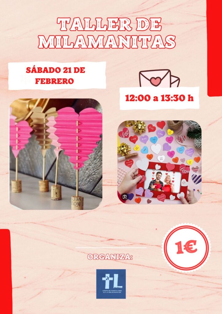 Este sábado 21 de febrero, de 12:00 a 13:30 h, tenemos Taller de Milamanitas: manualidades llenas de amor (corazones, marcos, detalles monos…) por solo 1€.